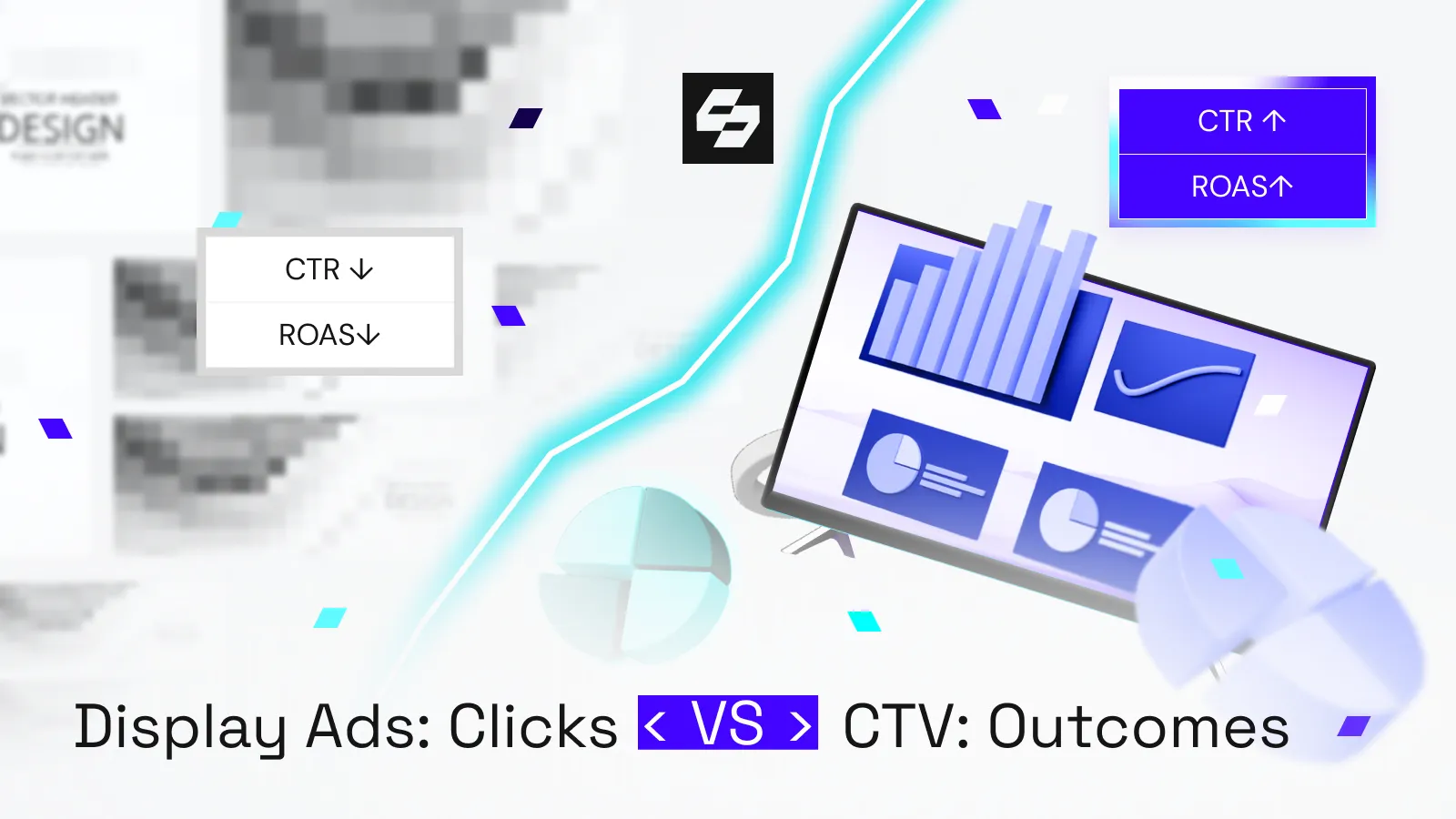 Display ads vs CTV performance comparison showing declining CTR and ROAS for display and growth for connected TV.