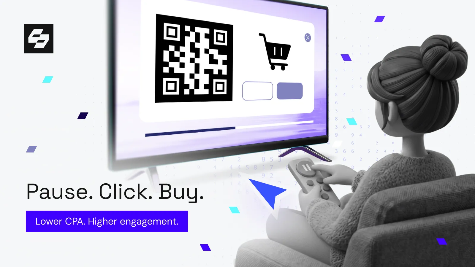 Shoppable CTV ad experience with pause screen QR code enabling direct purchase and measurable conversions.