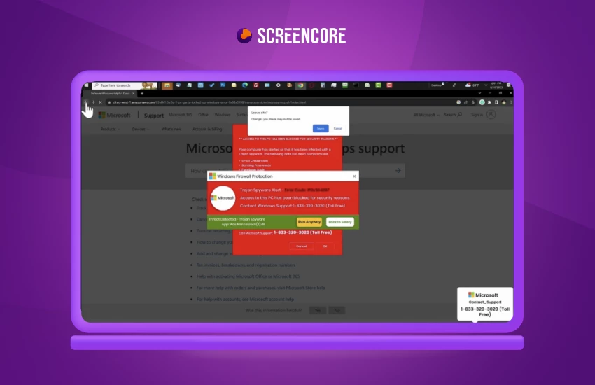 Malvertisers may display fake tech support pop-ups, warning users of non-existent security threats and urging them to call a fraudulent support hotline.