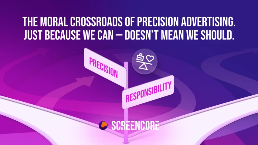 Illustration of precision vs responsibility crossroads in digital advertising ethics.