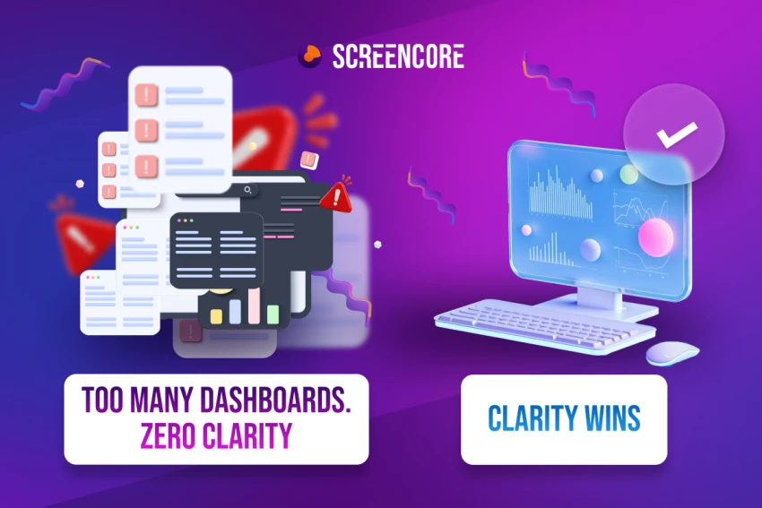 Too many dashboards. Zero clarity. Screencore designs for alignment, not overload.