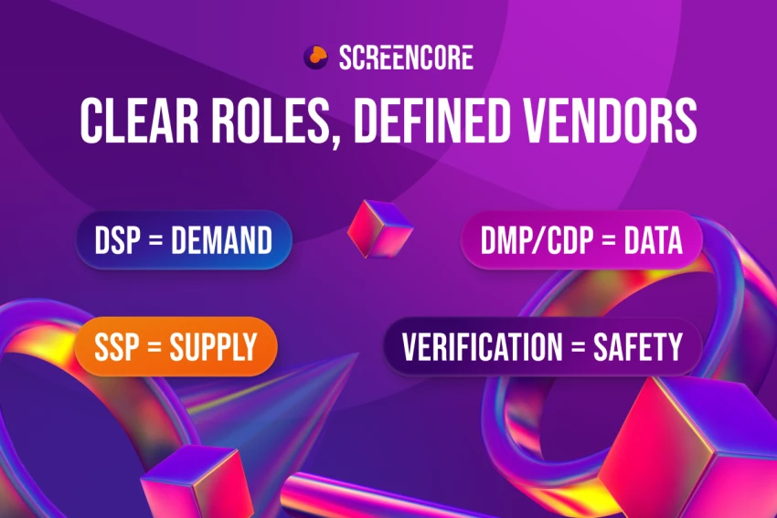 The next step is to assign accountability. Each vendor should map to a specific role in your workflow. A DSP is not just a media-buying tool; it’s the control center for activating campaigns. An SSP is not just another partner; it’s the gateway to premium inventory. CDPs and DMPs are not interchangeable data silos; they are the engines powering personalization and insights. Verification partners are not optional add-ons; they are the guardians of trust.