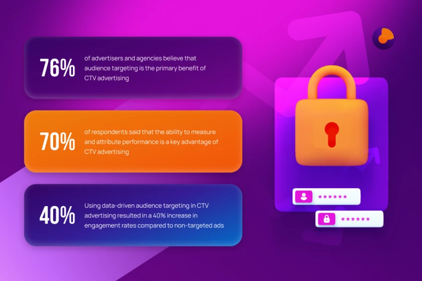 According to the "CTV Advertising: A Detailed Look at the Opportunity" report, 76% of advertisers and agencies believe that audience targeting is the primary benefit of CTV advertising. In the same survey, 70% of respondents said that the ability to measure and attribute performance is a key advantage of CTV advertising.